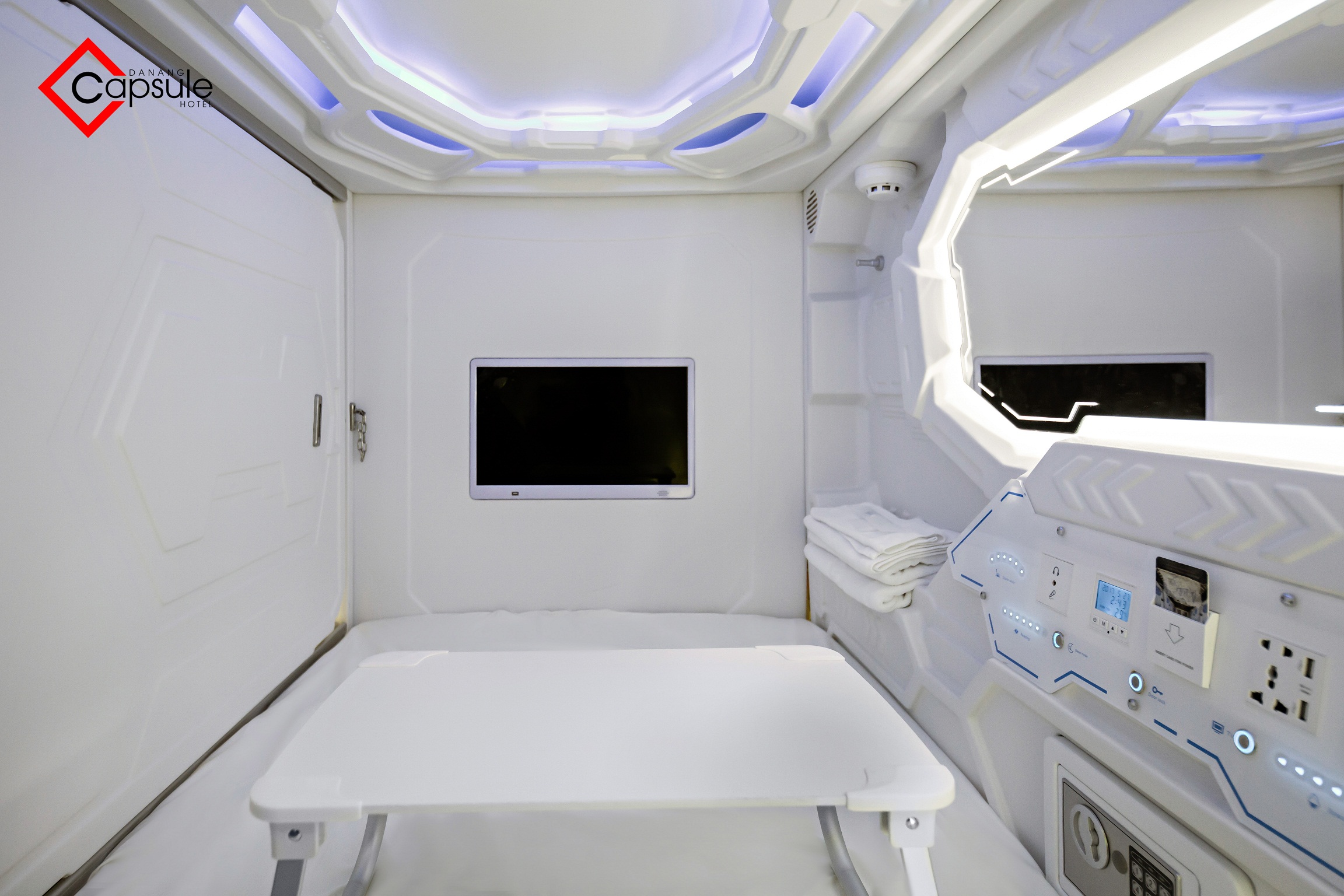 Phòng Tam Tam capsule không gian thoáng, tầm nhìn đẹp, diện tích lên tới 70m2 ban công hướng ra ngoài.Trải nghiệm được ngắm toàn cảnh thành phố lung linh,ánh đèn tráng lệ sẽ khuyến du khách không thể quên.Trong phòng được thiết kế và bố trí những trang thiết bị cao cấp sang trọng bao gồm ba khu sinh hoạt : góc làm việc,nơi tiếp khách và phòng ngủ,khu vực phòng tắm rộng với vòi hoa sen ấp lực cao,bồn tắm rộng sang trọng .